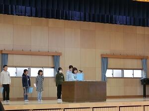 代表児童からのお礼の言葉,記念品の贈呈などを行い,感謝の気持ちを伝えました。