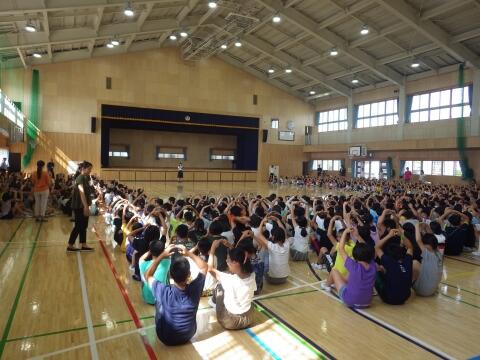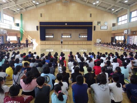 全校児童で,元気よく歌いました。