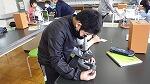 授業前にしっかり手洗い・消毒を済ませ、理科室の換気も着実に行いました。1班当たりの人数も2・3人までとし密を避けています。