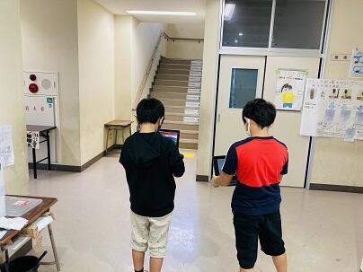 最後は理科の観察です。月や星の動きについて勉強していたためか,登校の際に「月が見えるよ!」と多くの子どもたちが教えてくれました。「夜じゃなくても見えるんだ!」「太陽と動きが逆だと思ったけど,違ったんだね!」と学んでいる様子が見られました。