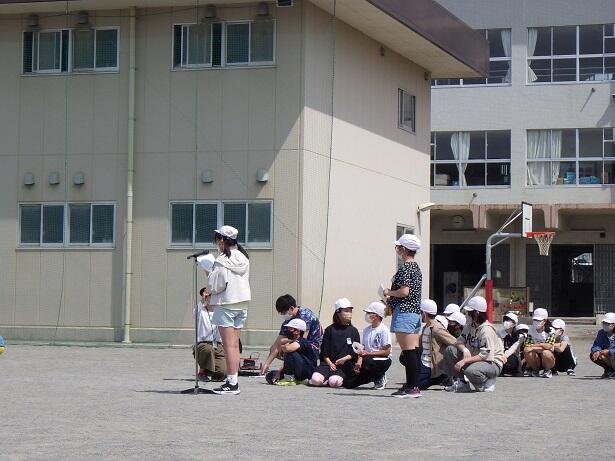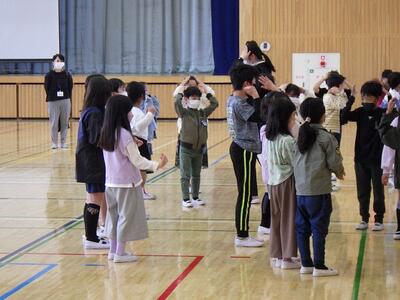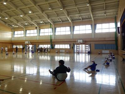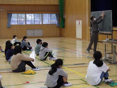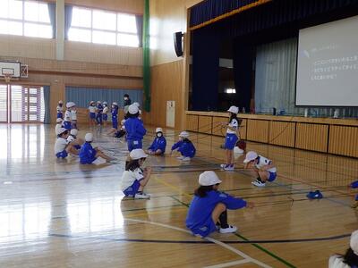 広々とした体育館での授業に子どもたちは終始どきどき,わくわく。いつも以上に張り切った様子で授業に臨んでいました。