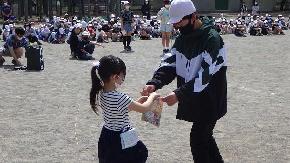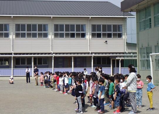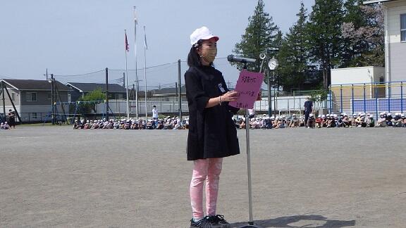 4月13日,美しい花々が咲く校庭で1年生と在校生との対面式が行われました。6年生の代表児童からは,お迎えのことばや,なかよしのメダルの贈呈,在校生からはお迎えの拍手が送られました。前日に入学式を終えたばかりの1年生ですが,式の終わりにはこれからお世話になる上級生に「よろしくお願いします。」と元気にあいさつすることができました。