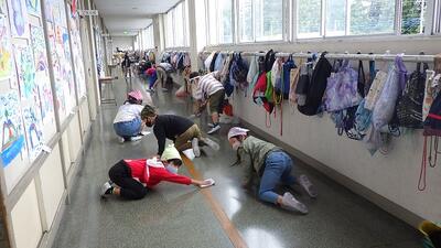 ↓ 特別教室や昇降口などは,3~6年生が担当しています。姿一小のみんなが気持ちよく過ごせるよう,頑張っていますね!