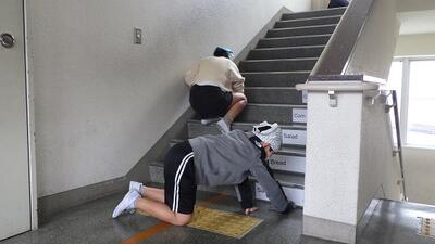 ↓ よりよい動きを目指して,グループごとにアドバイスし合いながら活動しました。タブレットのタイムシフトカメラ機能を使って動きを確認し,どうすればきれいに技がきまるか話し合う姿も見られました。