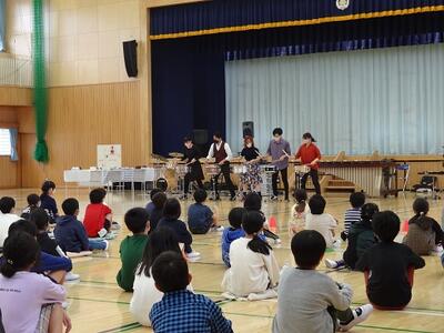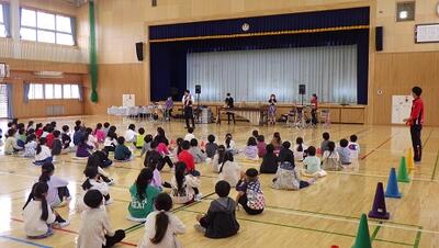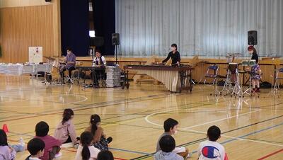 どの学年も鑑賞会が始まると音楽に合わせて体を動かしたり,しみじみと演奏を味わったりしていました。アニメのテーマソングや,音楽の教科書に掲載されている曲など,子どもたちが知っている曲を中心に演奏してくださり,あっという間に体育館が音楽でいっぱいになりました。