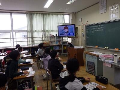 動画視聴とクイズを通して学びました。メッセージやSNSを使うときは内容をもう一度確認すること,おうちの人や友達とルールを作ることの大切さなどを教えていただきました。