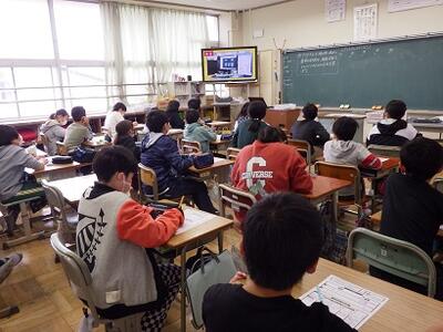 ↓ 工場内の様子を見て気付いたことをワークシートにメモしながら視聴しました。機械で製造しているだけでなく,最後は人の目で確認し,安全な製品を届けられるよう工夫していることを知りました。
