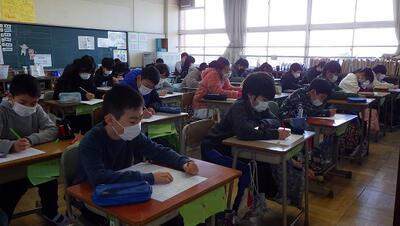 「すがいち計算オリンピック」が開催されました。1,2年生は50題,3~6年生は20題の計算問題を解き,点数に応じて金シール,銀シール,銅シールがもらえます。