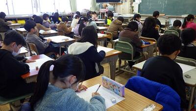 副校長からは,「残り一か月しかない」と考えるか「まだ一か月もある」と考えるかどちらがよいのかという問いかけがあり,卒業までの残りの時間をどう過ごすか改めて考えられたようです。
