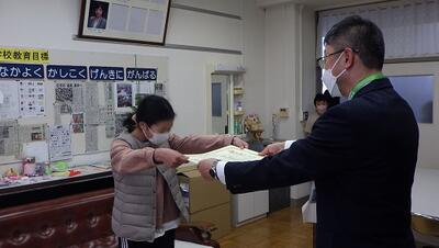 6年生からは,来年度から姿一小を引っ張っていってほしいという言葉が送られました。また,6年生児童が心を込めて制作した雑巾を在校生にプレゼントしました。