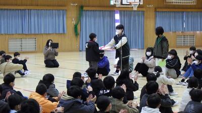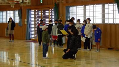 体育委員会の児童が,集会を進行したり,跳んだ回数を数えたり,学級の代表児童に賞状を渡したりとたくさん働いてくれました。集会が終わると,出口付近で拍手をしながら見送るなど,集会に参加した児童全員が「参加してよかった!」と思えるような工夫もありました。