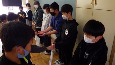 2月7日(火)朝の学習の時間に,6年生から5年生へ縦割り班活動の引き継ぎを行いました。