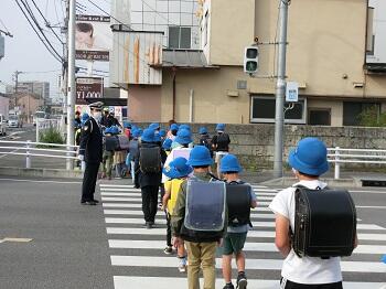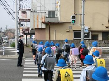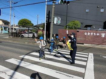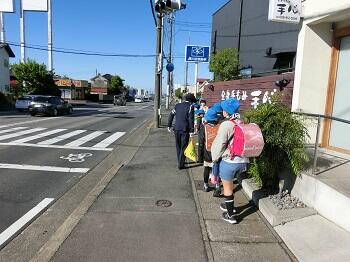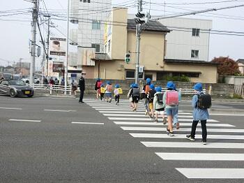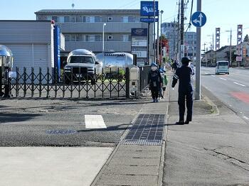 今回は西川田駅入口交差点を見ました。この地点も交通量が多い箇所で細心の注意を払う必要があります。交通指導員さんは,横断時のみならず信号を待っている児童にも「自転車が来ます。」と声を掛けてくださっていました。