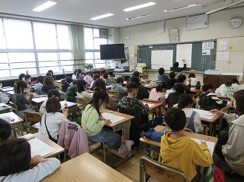 今年度初めての授業参観と学級懇談会が行われました。今回も、感染症予防のため授業参観は2時間に分散して行いました。