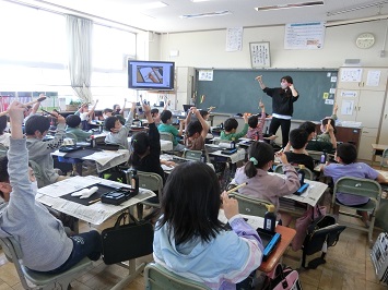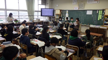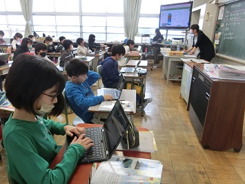 本市で1人1台端末が導入されてから3年が経ちます。本校でも、情報メディア担当の職員を中心に、授業内外を問わず子供たちが端末を活用して学習する場面を積極的に取り入れてきました。児童は、端末の操作にも慣れ、学習道具の一つとして使用することが当たり前になりつつあることが伺えます。