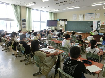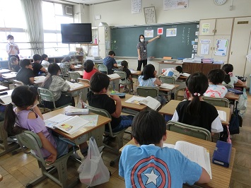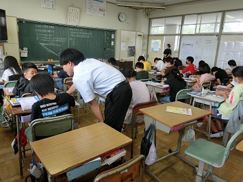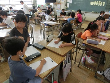 学習内容は,学級によって様々で,ペアやグループに分かれクラスメイト共に学び合う姿も見れました。緊張している様子もあるましたが,一生懸命学習に取り組んでいました。