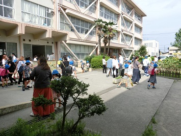 午前中のオープンスクールに続き、お忙しいところご来校いただいた保護者の皆様,ありがとうございました。大きな地震等の災害が起きた際には,今回のようにスムーズな引渡しができるよう,ご協力くださいますようお願い申し上げます。