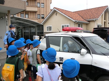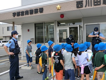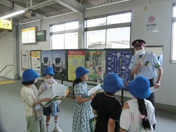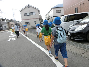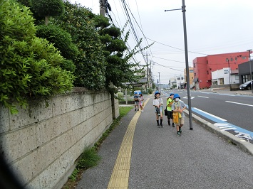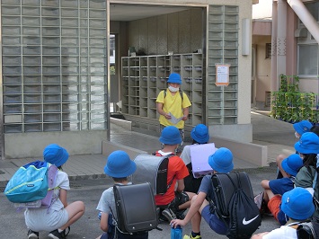 生活科の学習で,自分たちが普段使っている通学路にはどのような施設があるのか調べるために町探検に行きました。