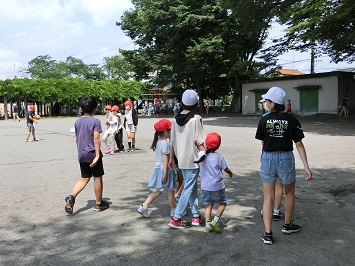 本校の教職員の他,学習支援ボランティアの地域・保護者の方々も児童の安全配慮のために一緒に引率してくださいました。