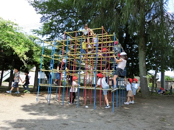 最近は雨で校庭に出られないこともありますが,天気が良いと休み時間にたくさんの児童が校庭で遊んでいる姿が見られます。姿一小では,ドッジボールや遊具を使った遊びが人気のようです。