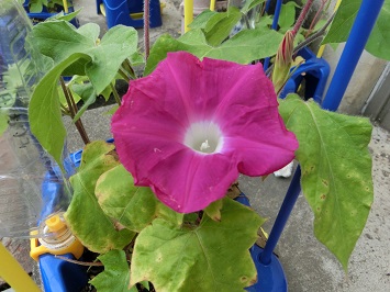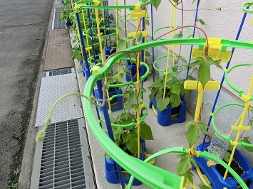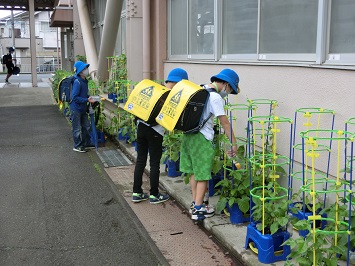 既に花が咲いている鉢もあり,児童が嬉しそうに教えてくれました。これも,毎日大切にお世話しているおかげですね。今後も,アサガオがどのように成長していくのか観察を続ける予定です。