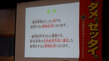 ライオンズクラブの方々をお招きし,薬物乱用防止教室を行いました。