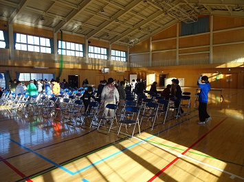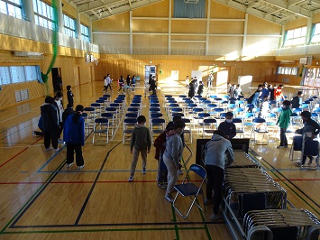 この日の1時間目の前半部分を使って,5年生の2クラスの児童が体育館の準備をしました。来年入学予定の保護者を対応する机を運んだり,椅子を並べたりしました。あと数ヶ月で6年生になる5年生。その自覚をもって一生懸命働いていました。