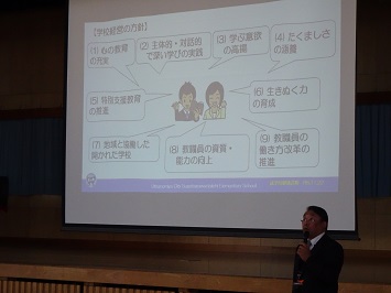 本校からは魅力ある学校づくり地域協議会の地域学校協働活動推進員(旧地域コーディネーター)のお一人が表彰されました。日頃から教育活動を支援するボランティアを募り,配置してくださっています。また,学校と地域をつないで特色ある学校づくりにご尽力いただいています。このような方をはじめとして数多くの方にご支援いただいているお陰で教育活動の充実が図られています。