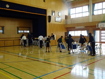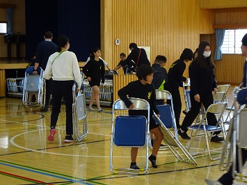 終了後には教職員が後片付けをしましたが,バレーボール部に所属する児童が手伝いを申し出,共に作業をしてくれました。
