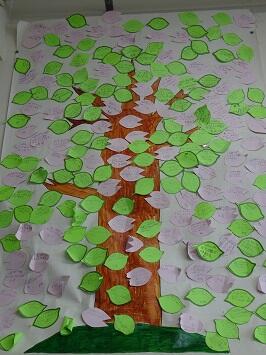 さっそくこの日のあいさつ運動で中央委員の児童から紙をもらい,台紙に貼る児童があちこちで見られました。