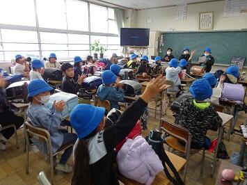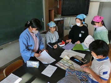 この日は「図書館クイズ」を行いました。本の中からクイズの答えを探し出し,用紙に答えを書きます。クイズは図書委員が作ったそうです。このように自主的に活動できる5,6年児童を頼もしく感じます。