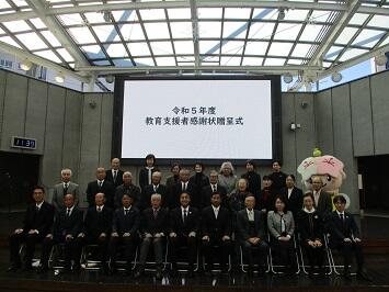 学校教育への支援や地域における子どもの育成活動に対し貢献されておられる個人や団体の皆様に感謝状を贈呈する式が,オリオンスクエアにおいて行われました。