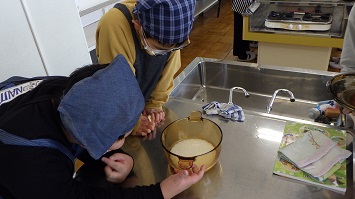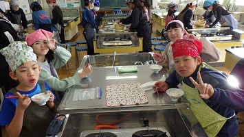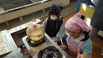 5年生が家庭科の授業で調理実習を行いました。前回の青菜のおひたしに続き,今回は鍋でご飯を炊きました。