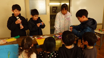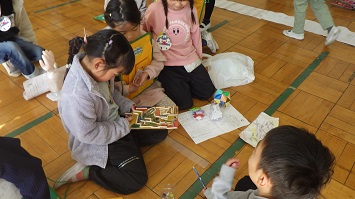 室内では,なんでもバスケットやイス取りゲーム,爆弾ゲームなど,様々な遊びを楽しんでいました。6年生の指示に従って,力を合わせて準備と片付けをする姿も見られました。