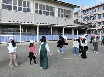 体育の授業においても取り組んでいる長縄と短縄で遊ぶ児童が増えてきました。