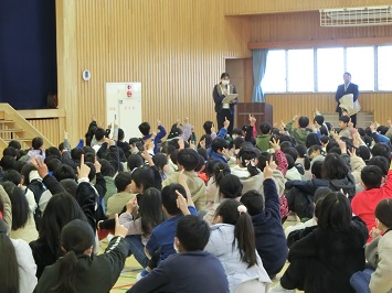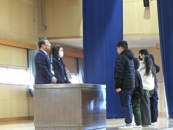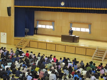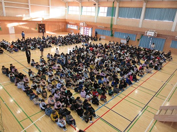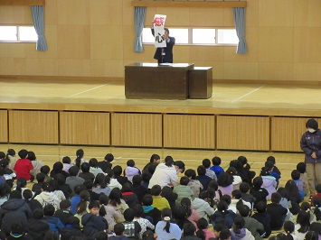冬休み前の最後の授業日に冬休み前朝会が行われました。