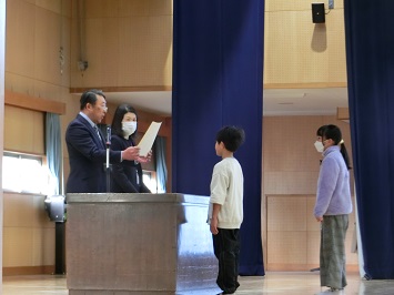 はじめに,下野教育書道展やジュニア芸術祭をはじめなど各種コンクールに入賞した児童が表彰されました。