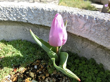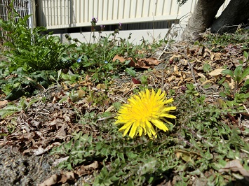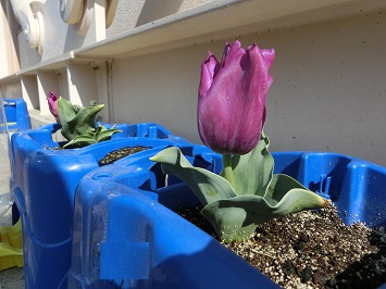 ↓ 正面玄関近くの花壇やプランターに植えたチューリップが咲いているのを発見しました。1年生が植えたチューリップも徐々に蕾が開き始めています。また,可愛らしいタンポポも咲いていました。