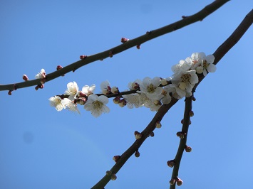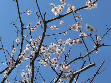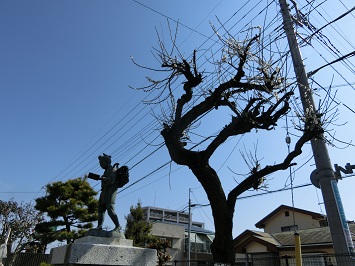 ↓ 二宮金次郎像の近くにある梅の木です。3月に入ってから少しずつ白くて小さな花が咲き始め見ごろを迎えています。