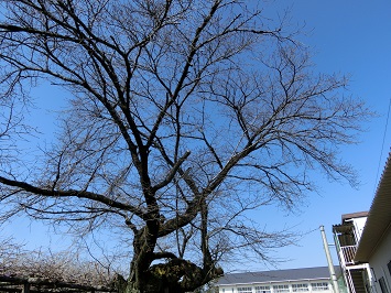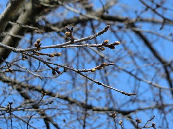 ↓ 桜の木を見てみると,まだつぼみは固く,開花まではもう少し時間がかかるようです。