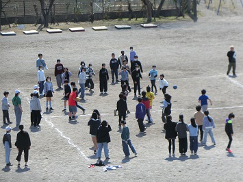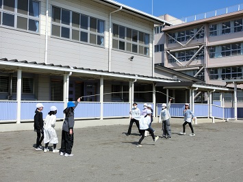 5年生が「クラス対抗4マスドッジボール」をしていました。テーマは「全力で楽しむ」です。6年生を送る会や卒業式の準備で,大活躍だった5年生。少しは気分転換できたでしょうか。終始笑顔で活動していました。