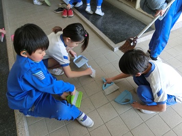 ↓ 4年生は教室だけでなく,廊下,昇降口,トイレ,水道などを分担して掃除しました。