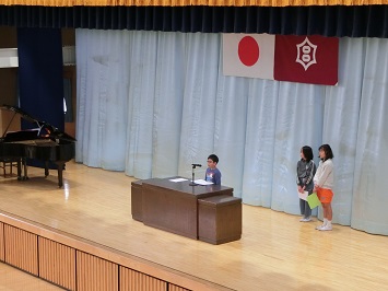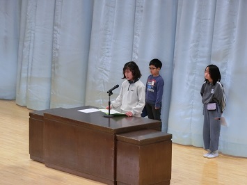 1,3,5年生の代表児童が,1年を振り返り,今年度頑張ったことや,進級してから挑戦したいことなどを発表しました。
