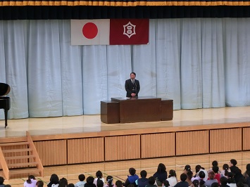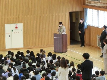 最後に,児童指導担当の教諭から春休みの過ごし方について話しました。春休み中も地域の方々のことを考えて行動すること,交通安全に気を付けて安全に過ごすことについて児童に話をしました。