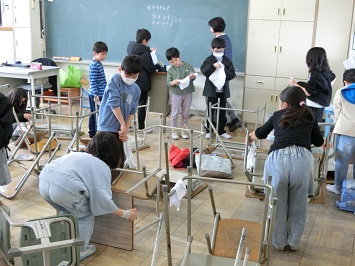 5時間目の時間を使って,教室の机と椅子の移動を行いました。