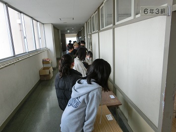 1年間クラスメイトと過ごした教室とも今日でお別れ。4月から使うクラスが気持ちよく使えるように,教室や廊下,下駄箱を清掃していました。