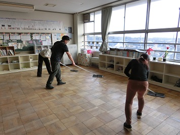 ワックスをかけた後の床は見違えるようにピカピカになりました。これで新年度を気持ちよく迎えられそうです。