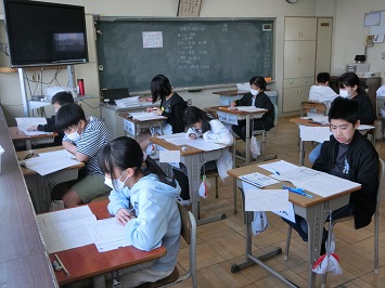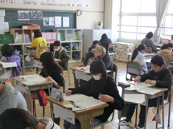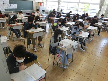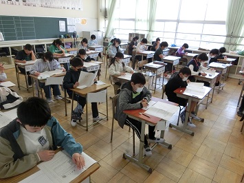 学級担任の「はじめ」の合図に合わせて,一斉に問題用紙をめくりスタートしました。普段行っているテストとは違った緊張感の中,どの児童も集中して問題を解いていました。