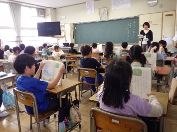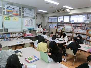 4月14日(月)から,各学級ごとに「図書館オリエンテーション」を行っています。図書館司書が,図書室の使い方について説明しました。