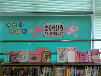 じどうのみなさん,げんざいは ひとり2さつまでほんをかりることができます。「さくらいろのほん」や「はるのほん」がとしょしつに しゅうごうしていますよ。ぜひとしょしつに いってみましょう。
